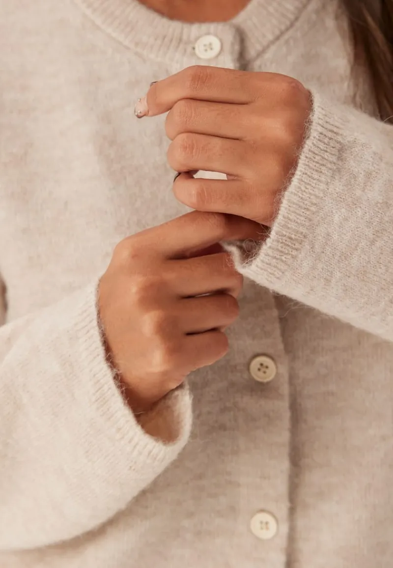 – Finstrikket ull- og alpakablanding.
