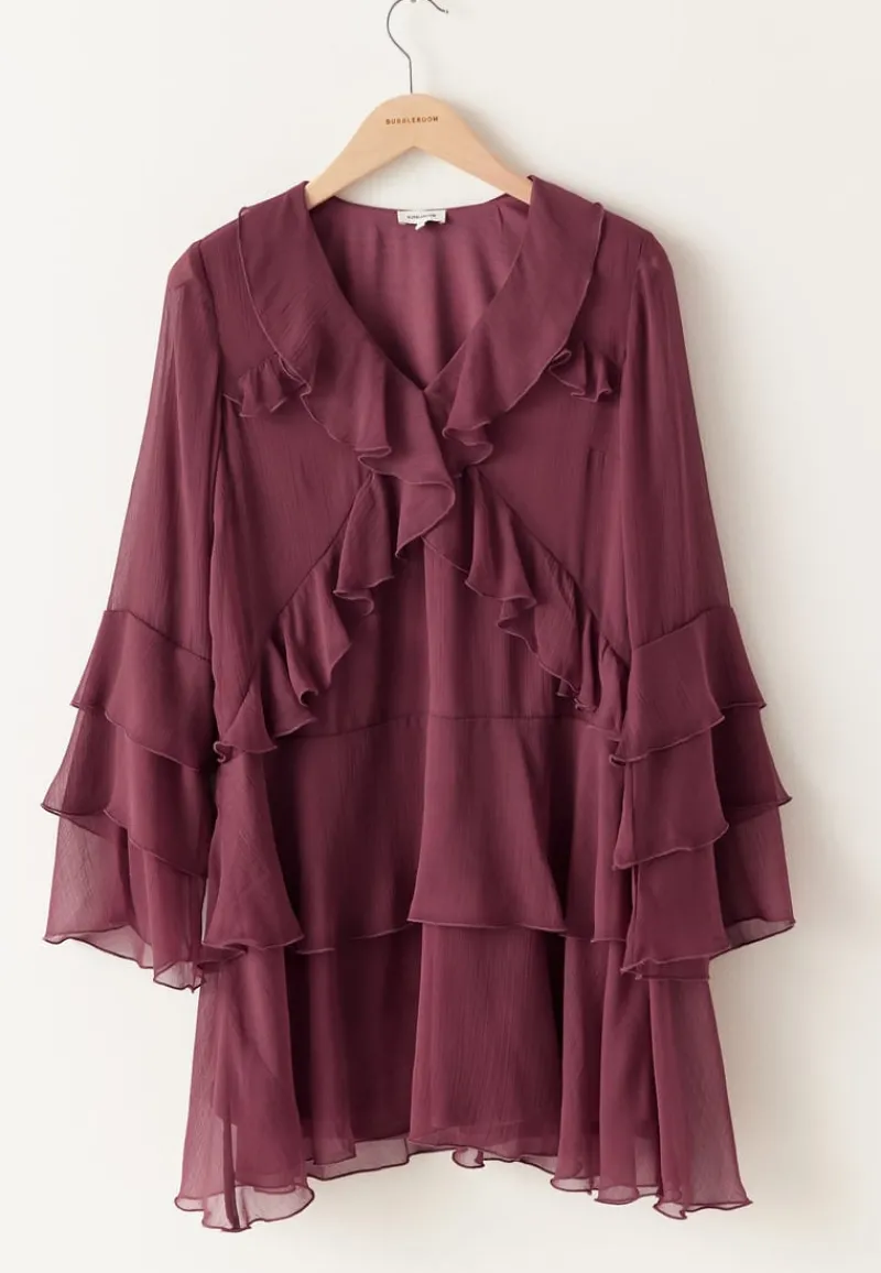 – V-formet hals med volanger