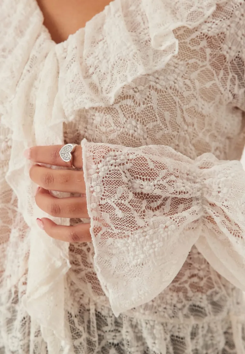 – Brede ermer med strikker på enden av ermene.