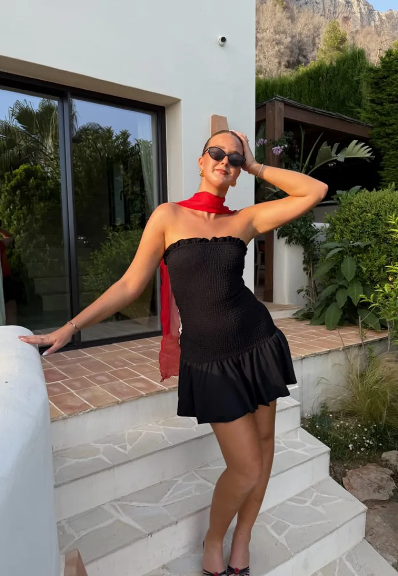 – Hals med en volangen.