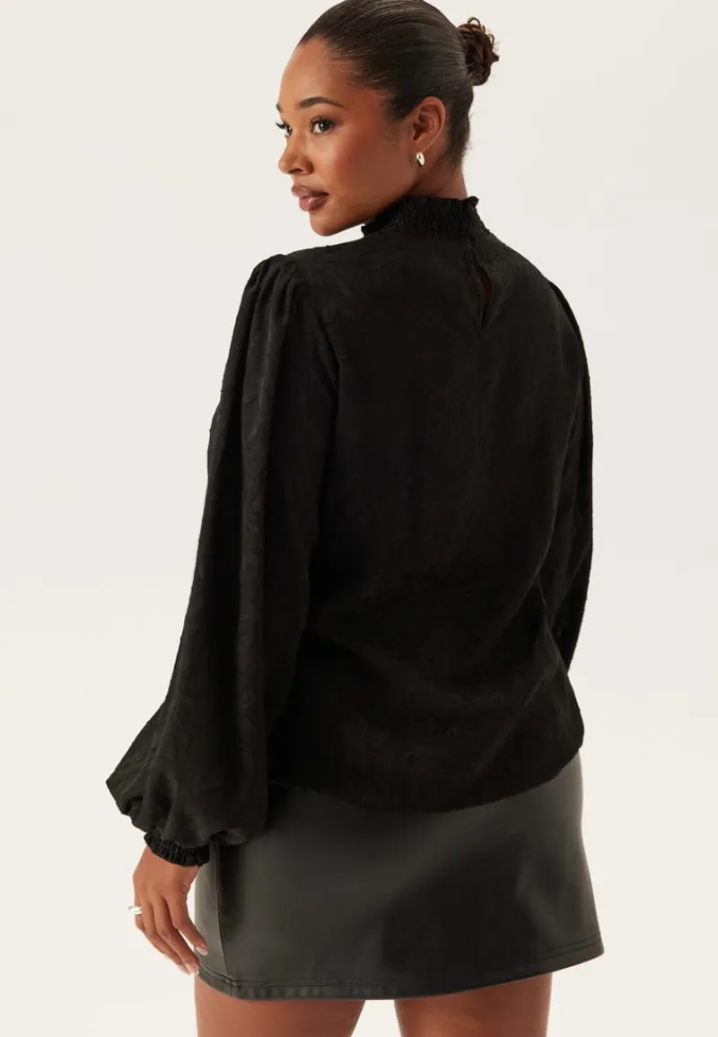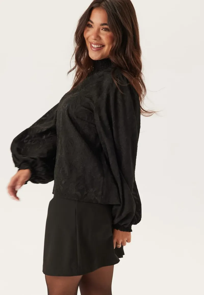 – Høy hals med krage med en vaffelsøm og knappelukking i nakken