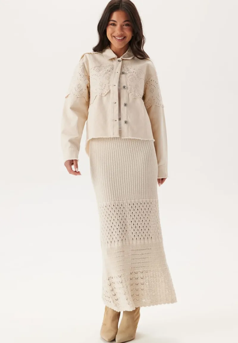– Hullbroderi foran og på ermene.