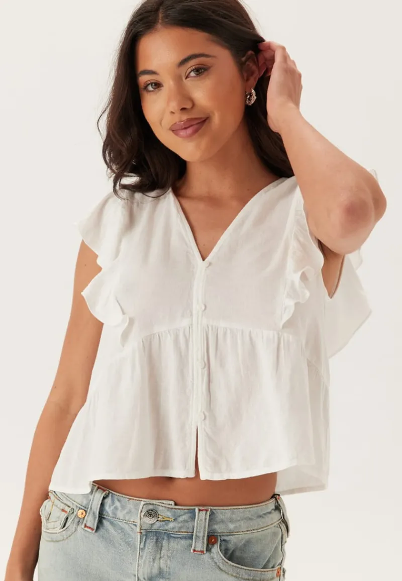 – V-hals med falsk knepping foran.